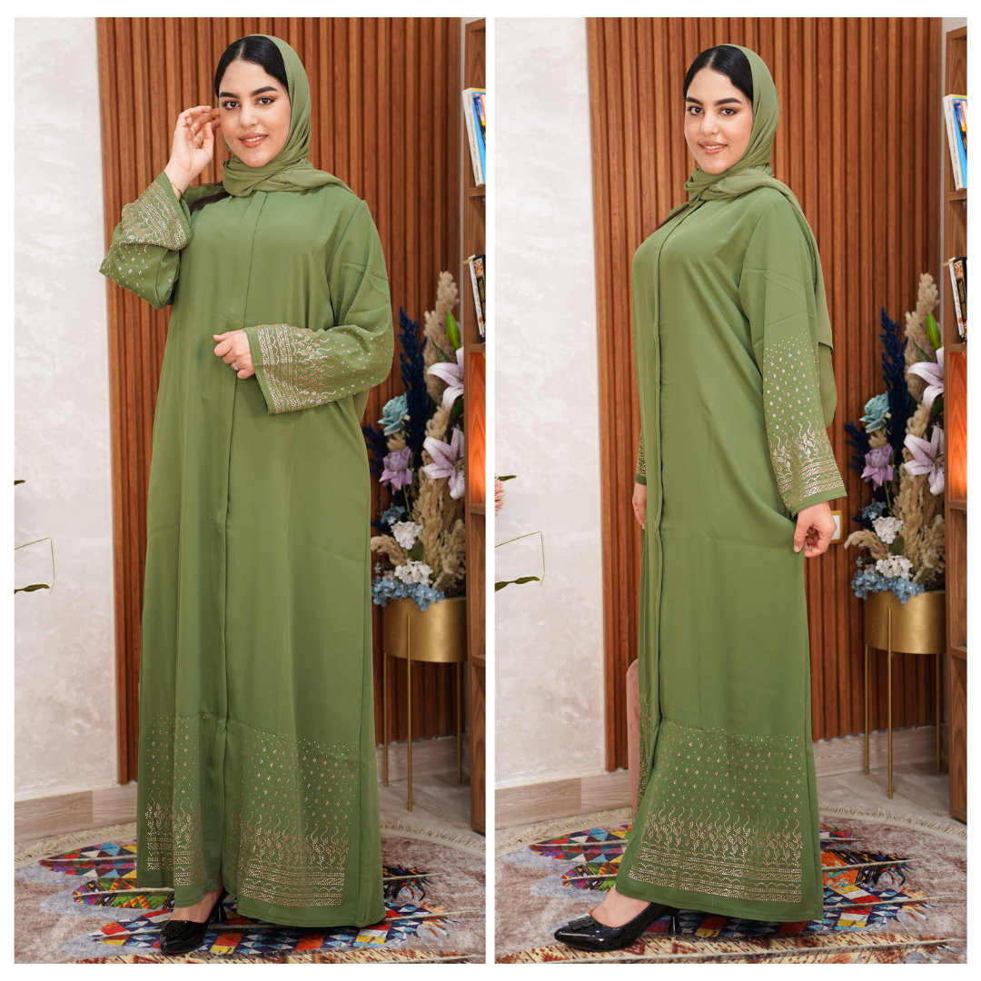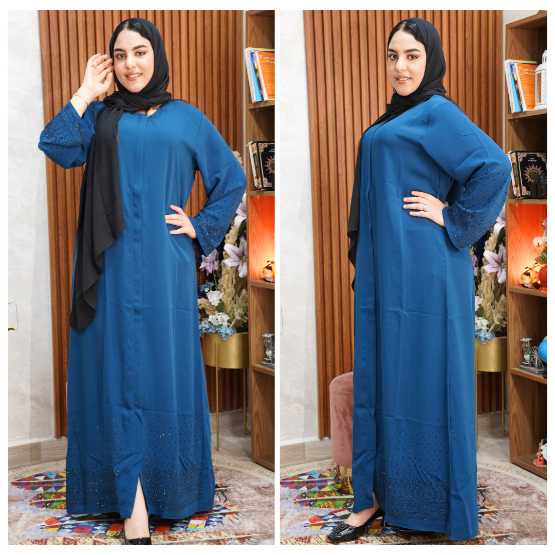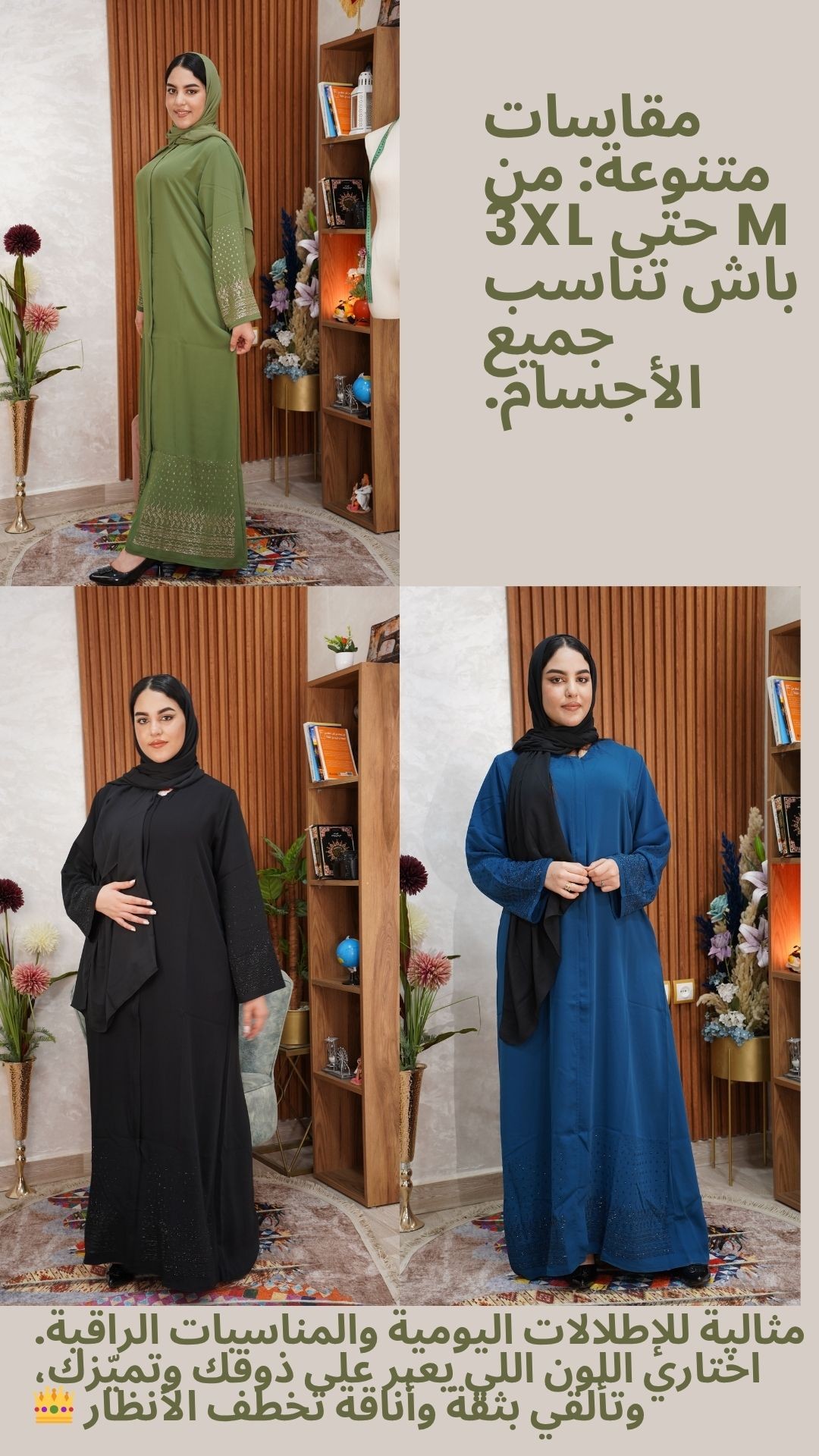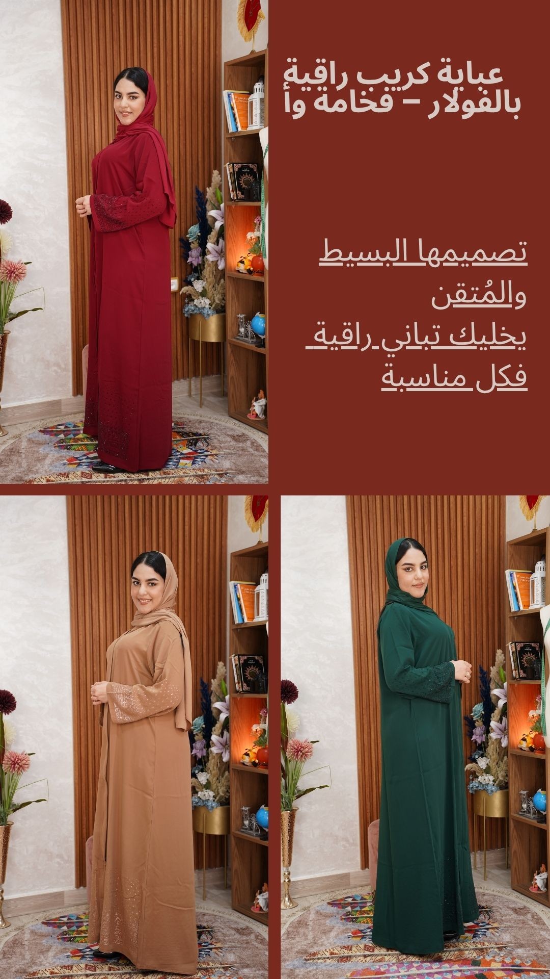 🌸 عباية كريب راقية بالفولار – فخامة وأناقة بتفاصيل ناعمة